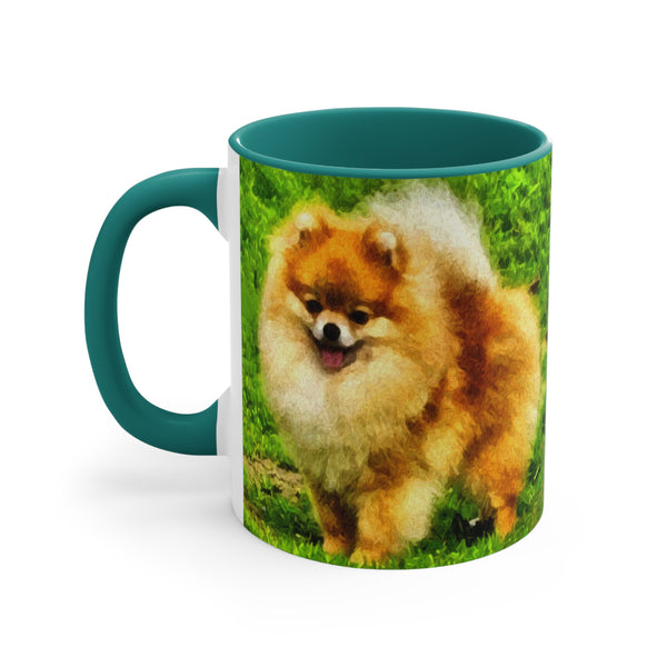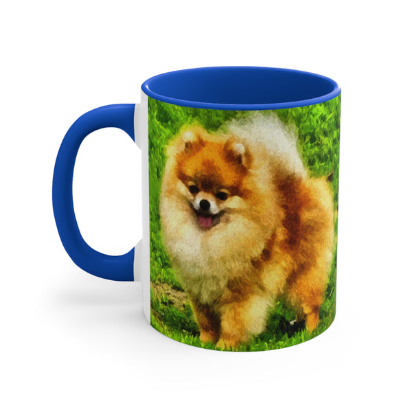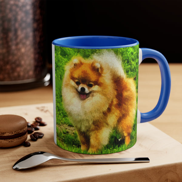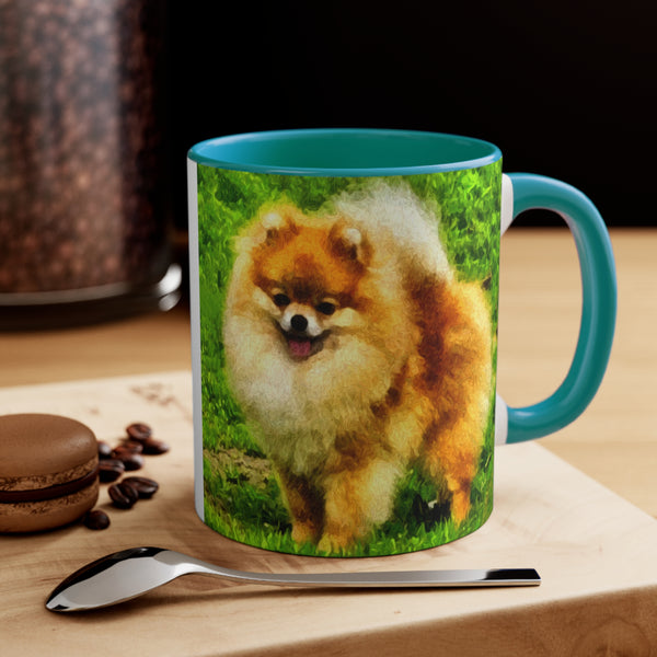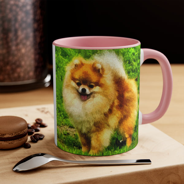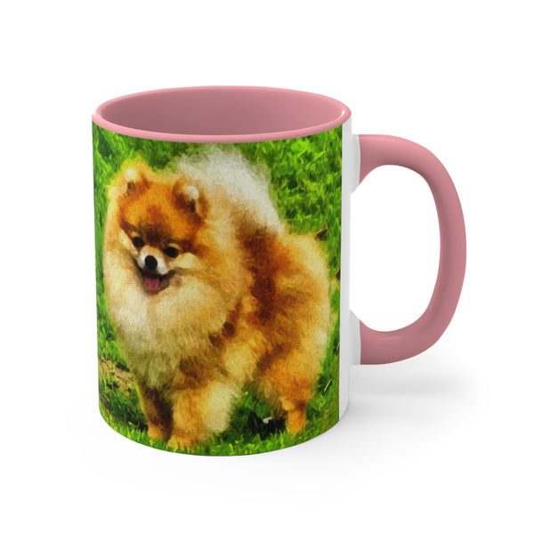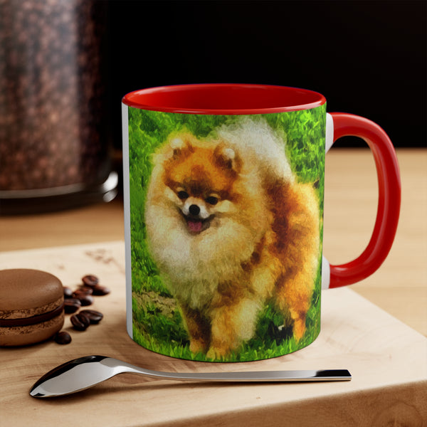 Start your day with the Pomeranian 'Pom Pom' Accent Coffee Mug, 11oz. This mug brightens mornings with its eye-catching two-tone design that's as charming as a Pomeranian's personality. The cozy C-handle offers a comfortable grip for sipping your favorite hot beverages. Crafted from durable white ceramic, this mug blends style and practicality, making it a must-have for any coffee lover with a flair for fun.