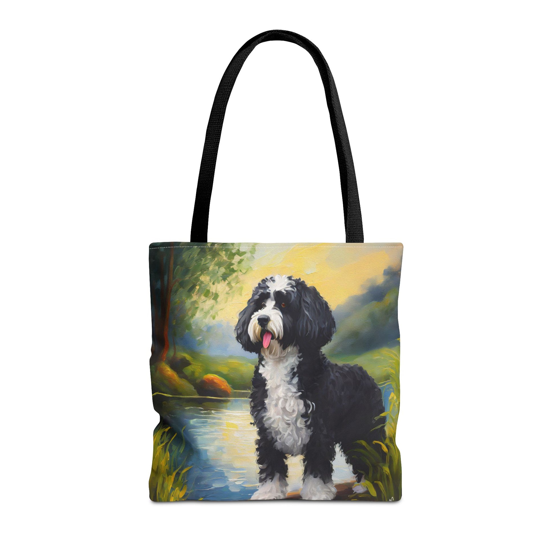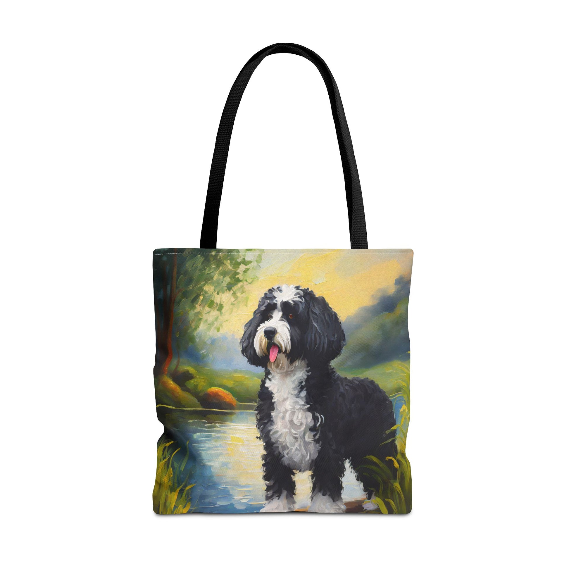Dive into adventure with the Portuguese Water Dog Polyester Tote Bag! Available in three playful sizes, these tote bags are perfect for beach days or farmer's market treks. Made from tough spun polyester with double-stitched seams, they're durable enough for all your daily escapades. Each bag boasts a vibrant all-over print, adding a splash of fun to your style.