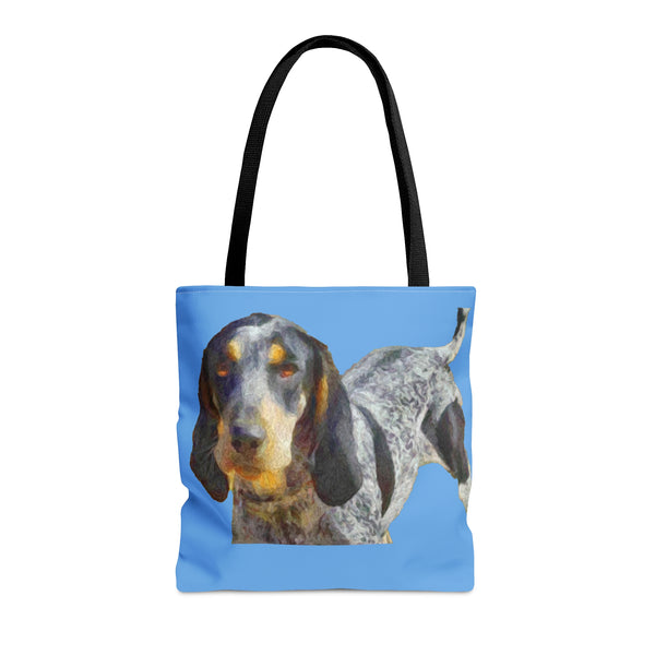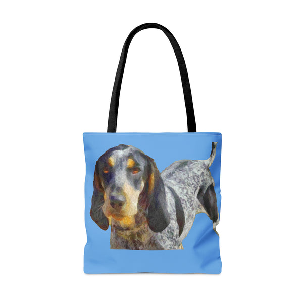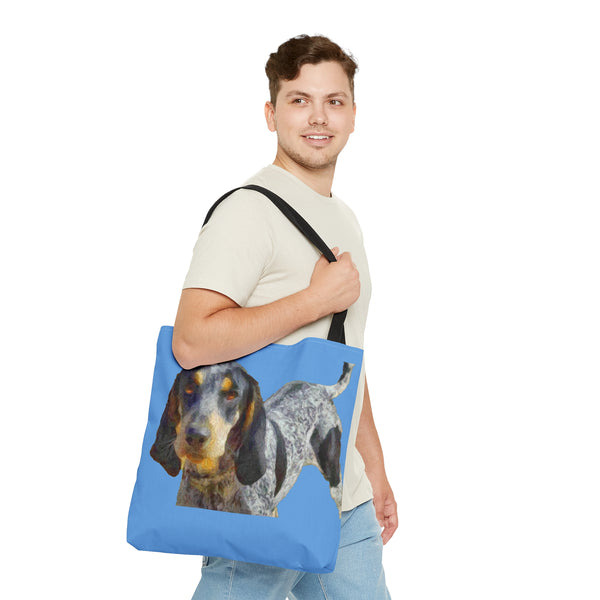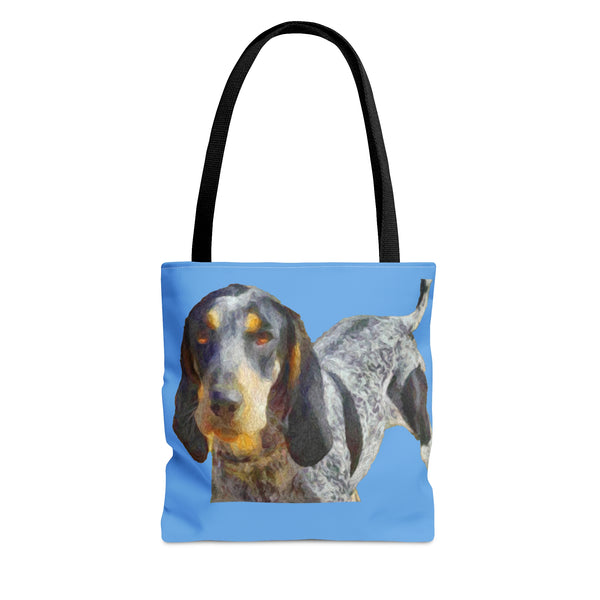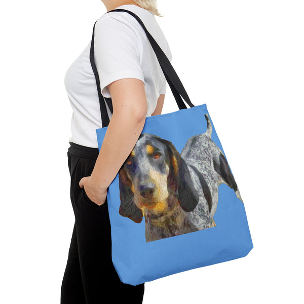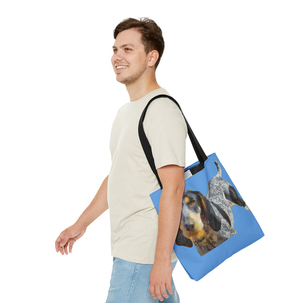 Introducing the Bluetick Coonhound Tote Bag, a delightful companion for dog lovers! Adorned with a charming all-over print of these vocal canines, this tote is as functional as it is stylish, making it perfect for trips to the park or leisurely beach days. Crafted from high-quality 100% polyester, it's designed for durability, featuring boxed corners and black inner stitching that ensure it retains its shape over time. The comfortable black cotton handles make carrying a breeze. With a non-woven laminate interior, this tote is practical and easy to clean, providing a secure home for all your essentials.