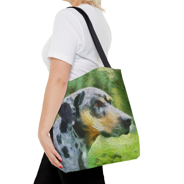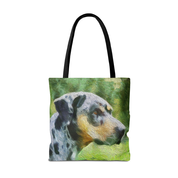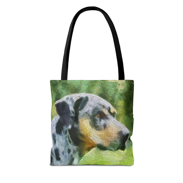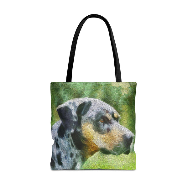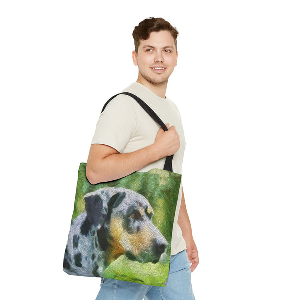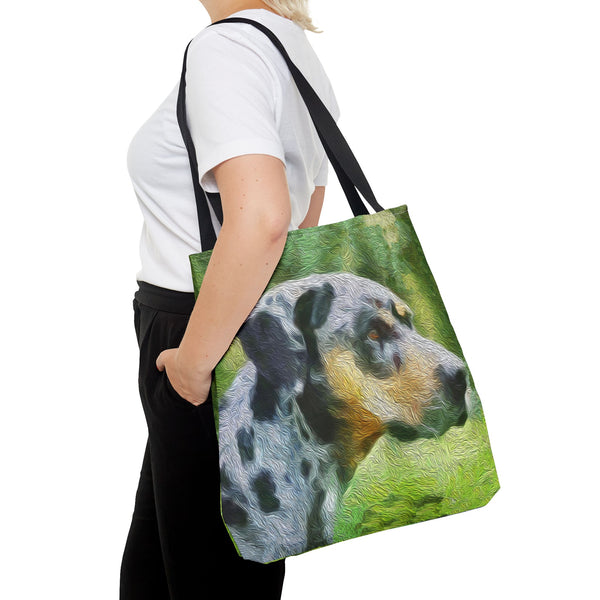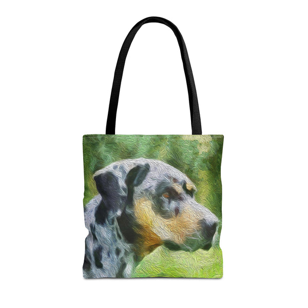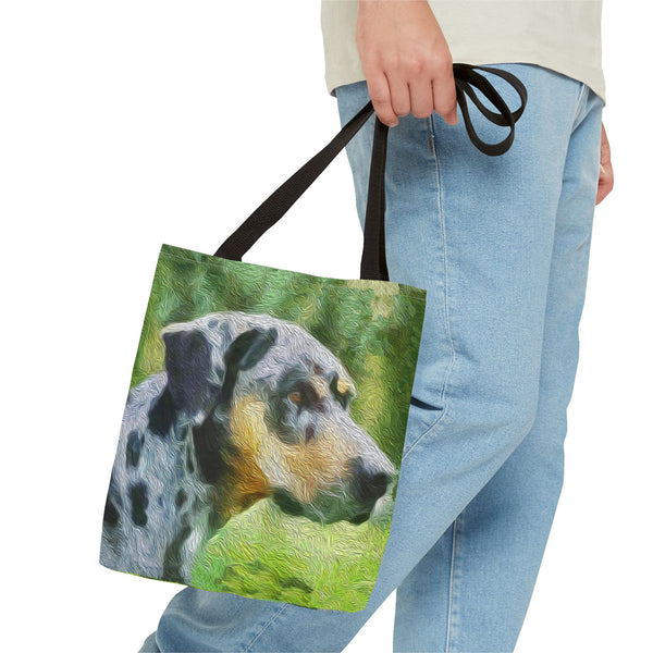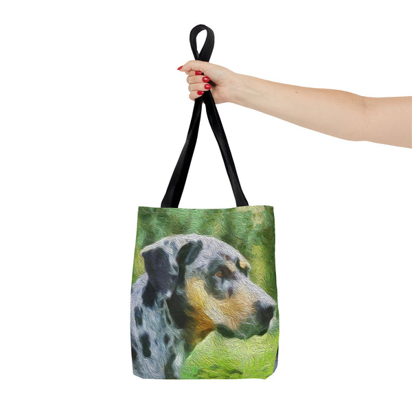 The Catahoula Tote Bag (AOP) is your ideal companion for any adventure. Designed with stylish versatility, this tote bag is perfect for everything from farmer's market trips to cozy café outings. It comes in three fabulous sizes and offers a vibrant array of handle colors, allowing you to express your unique style effortlessly. Crafted from 100% spun polyester, this tote showcases durability with double-stitched seams and robust cotton webbing straps to accommodate your essentials, whether it be groceries or books. The nonwoven laminate lining enhances luxury while maintaining durability for everyday use. Advanced dye sublimation ensures the all-over print boasts high-end visuals that are sure to turn heads. Function meets flair in this essential tote.
