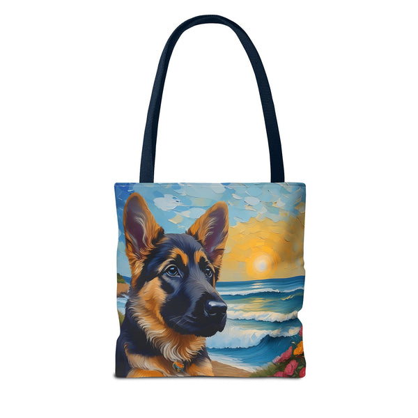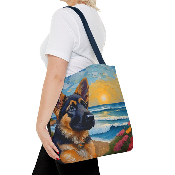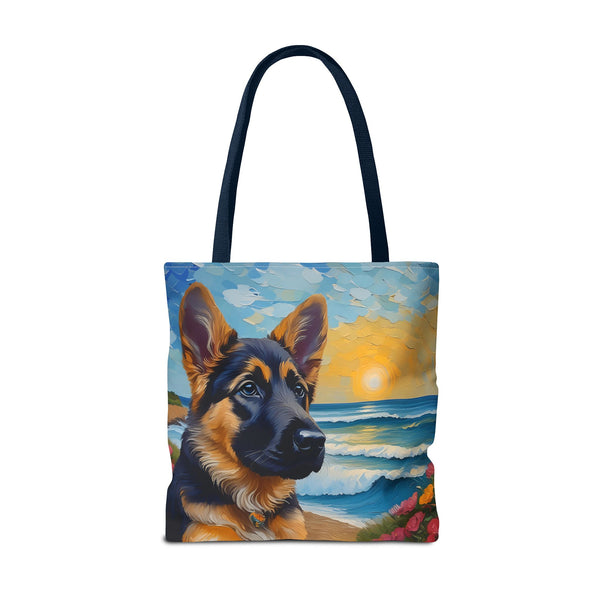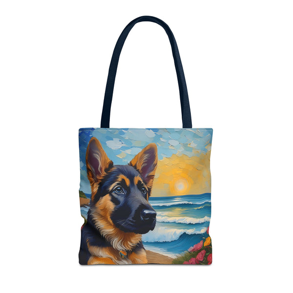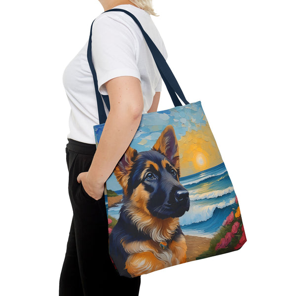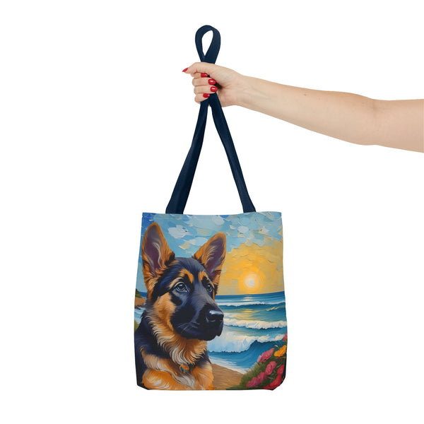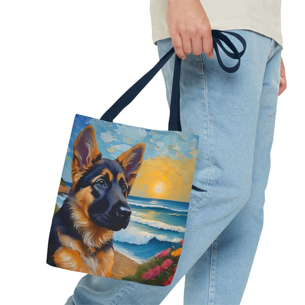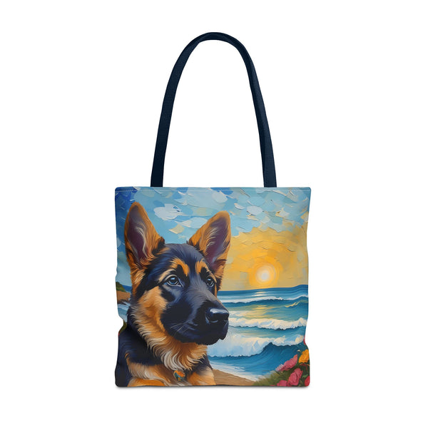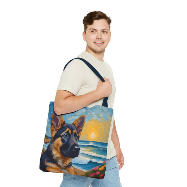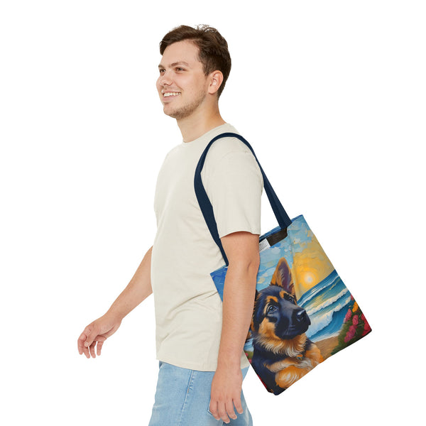 Introducing the German Shepherd Puppy - Polyester Tote Bag (AOP), your stylish partner for any outing! Made from resilient 100% spun polyester, this bag combines durability with lightweight ease. Choose from three sizes to showcase your unique personality. The spacious storage compartment makes it a breeze to carry your essentials, whether you're heading to the park or a shopping spree.