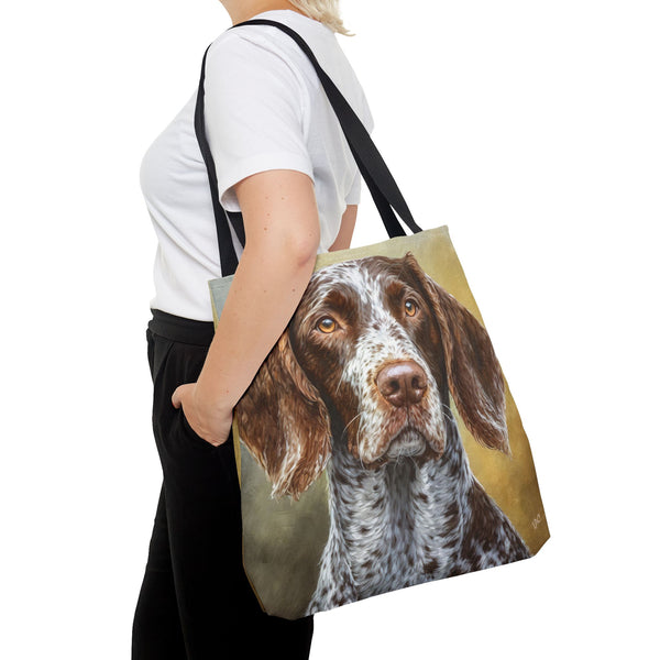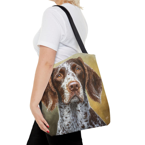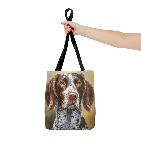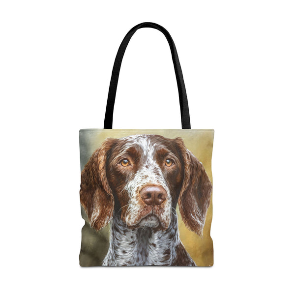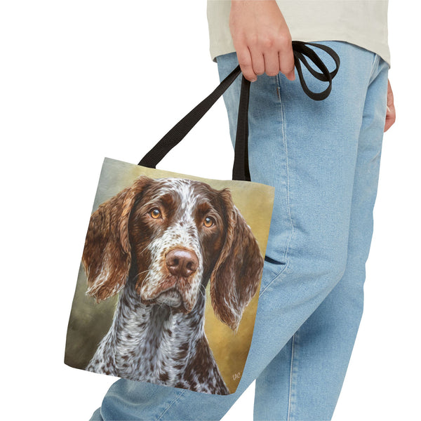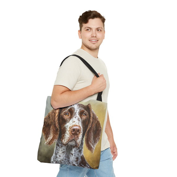 The German Wirehaired Pointer Tote Bag (AOP) is designed for those who appreciate quality and functionality. Available in three sizes, this tote meets diverse storage needs with ease. It is crafted from 100% spun polyester, featuring durable double-stitched seams and sturdy cotton webbing straps, ensuring it withstands daily use. The advanced dye sublimation technique creates vibrant all-over prints that enhance visual appeal while the non-woven laminate lining maintains robustness.