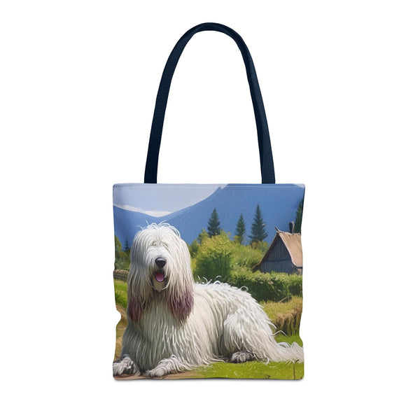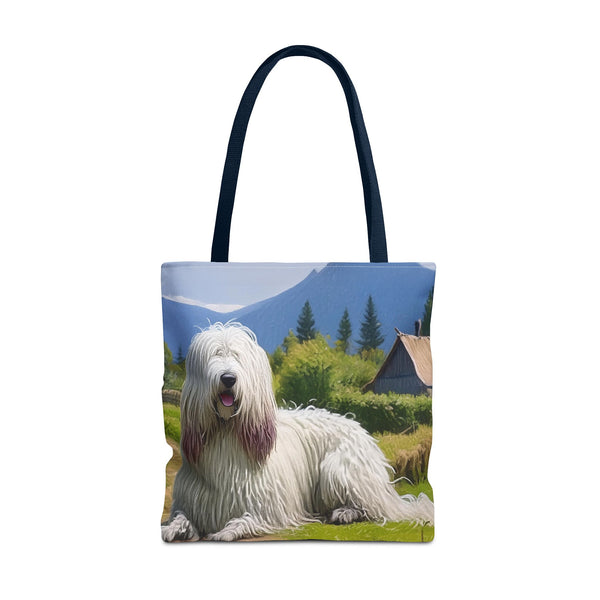 Introducing the Komondor Polyester Tote Bag (AOP), where art meets practicality! Adorned with bold, vibrant prints, this tote is not just an accessory—it's a conversation starter. Designed for everyday escapades, it boasts sturdy double-stitched seams and comfy cotton webbing straps, ready to carry all your essentials. Whether you're on a shopping spree or a weekend adventure, this tote seamlessly fuses style with functionality. Key Specifications include durable polyester construction, double-stitched seams, cotton webbing straps, and versatile sizes to suit your needs perfectly. Elevate your tote game with this must-have companion!