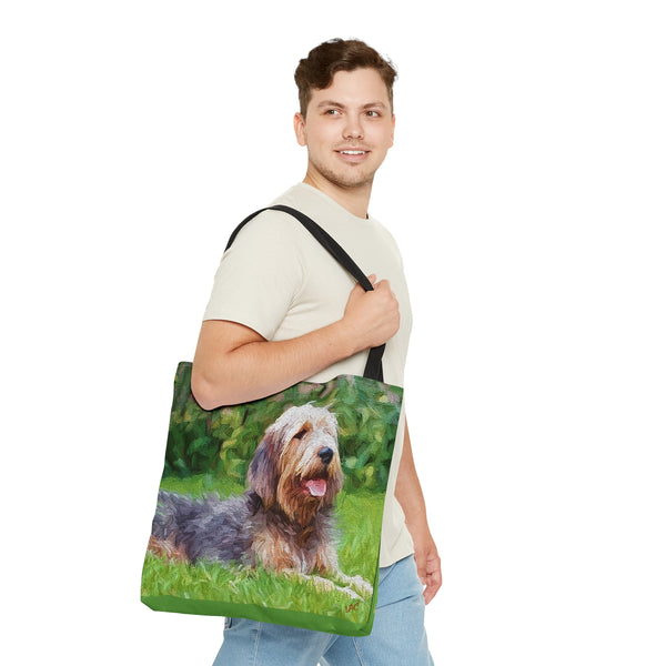 Introducing the Otterhound Polyester Tote Bag, your quirky companion for every adventure! This delightful tote features a playful all-over print that makes it perfect for beach trips or leisurely strolls. Made from tough 100% polyester, it's designed to carry your essentials season after season. The practical construction includes boxed corners for easy access and sturdy cotton handles, ensuring durability wherever you go. Grab this tote and let your personality shine!