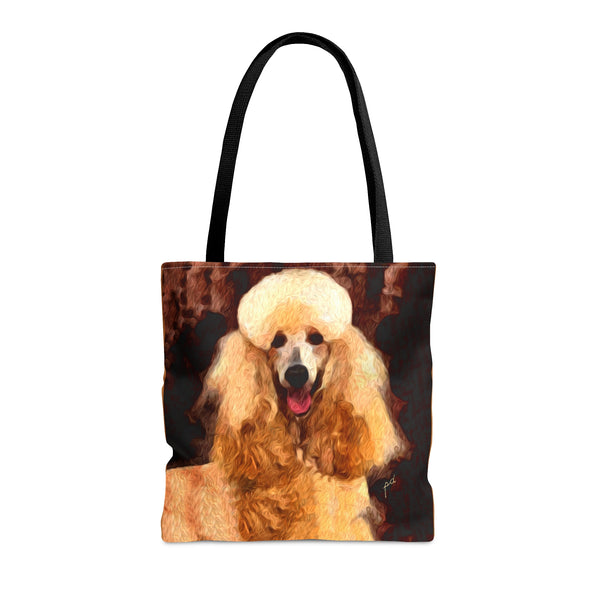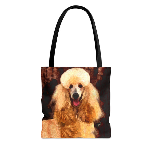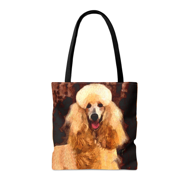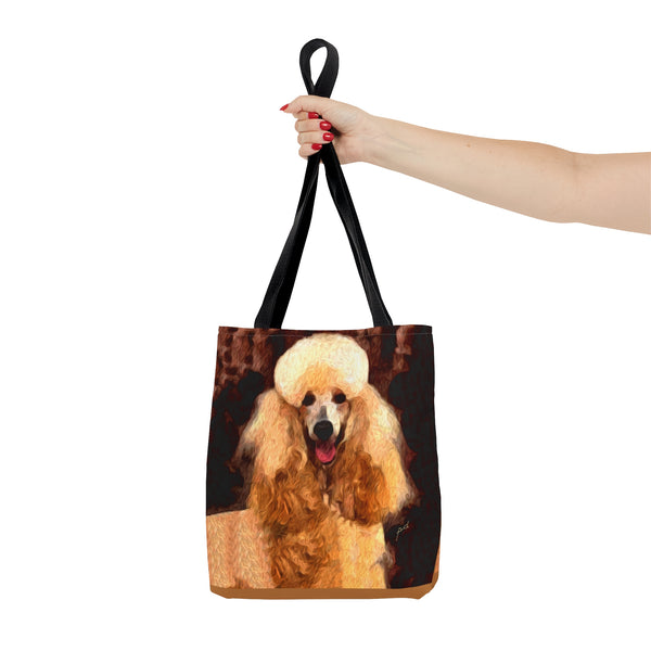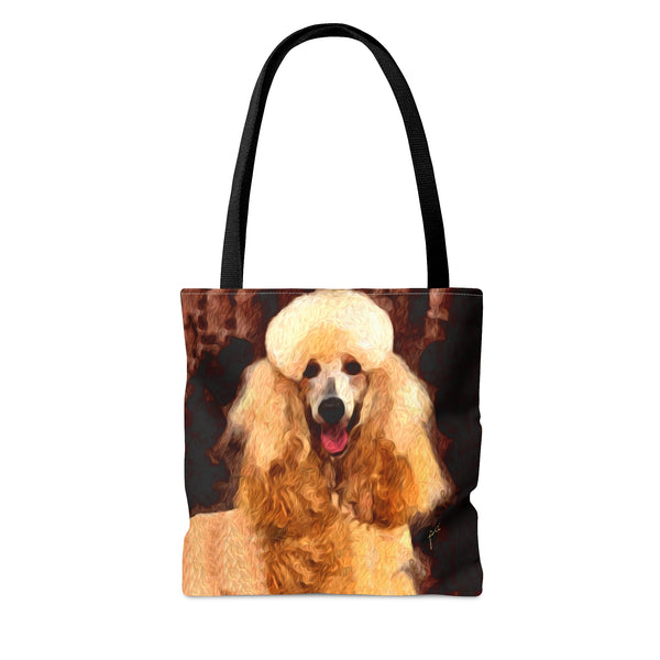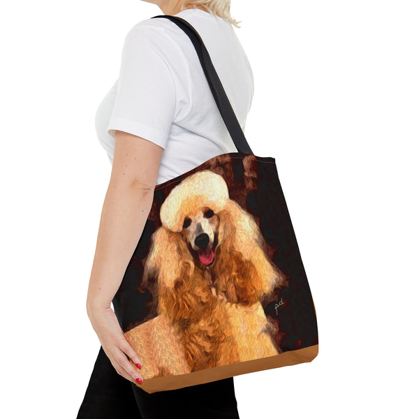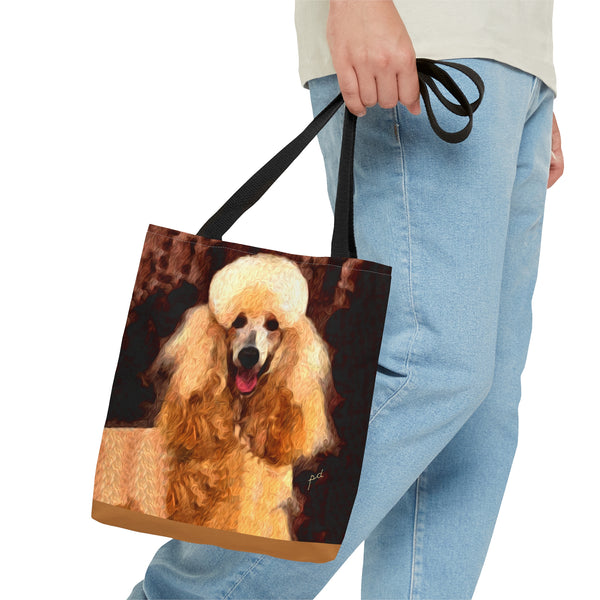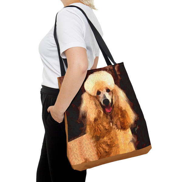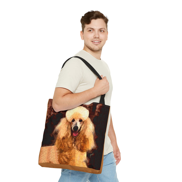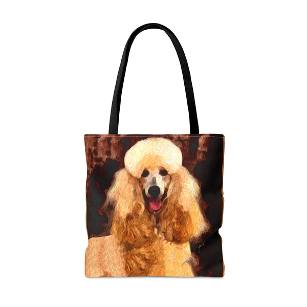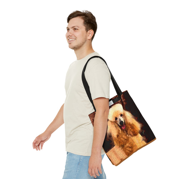 Introducing the Poodle Tote Bag, perfect for beach outings or city adventures! Crafted from sturdy materials, this bag features an eye-catching all-over print that radiates personality and flair. With comfy black cotton handles and a spacious 18 x 18 inches, it's designed to carry your essentials effortlessly while elevating your style.