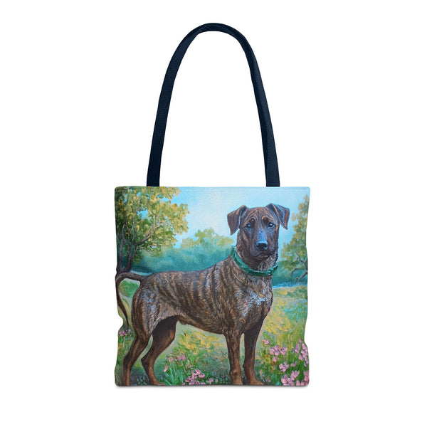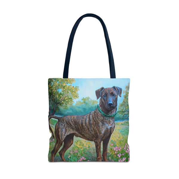Elevate your accessory game with the Treeing Tennessee Brindle Polyester Tote Bag (AOP). This charming bag features an artistic design that showcases your love for this delightful breed. Customize your look with five vibrant handle colors and enjoy its robust construction, built to accompany you on all your adventures. From spontaneous market visits to leisurely park strolls, this tote is eco-friendly and available in three sizes to suit all your needs.