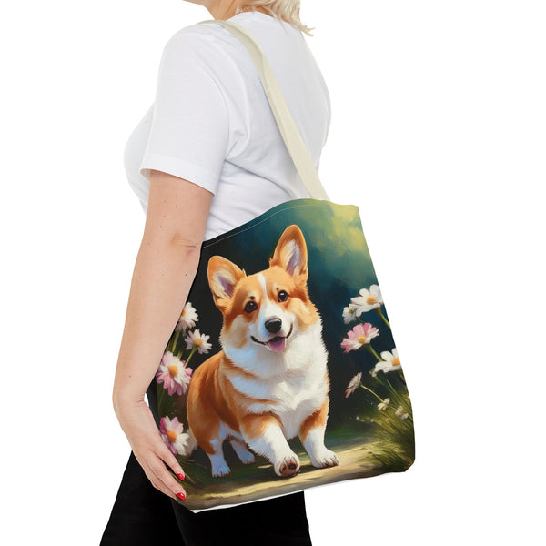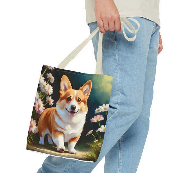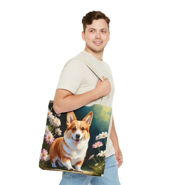 Introducing the Welsh Corgi Puppy Polyester Tote Bag, the ideal companion for dog lovers everywhere! This delightful tote showcases vibrant prints that capture the essence of the playful corgi and its famous bunny hop. Crafted from 100% spun polyester with sturdy double-stitched seams, it’s designed to accompany you on all your adventures while keeping your essentials secure and stylish.