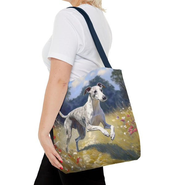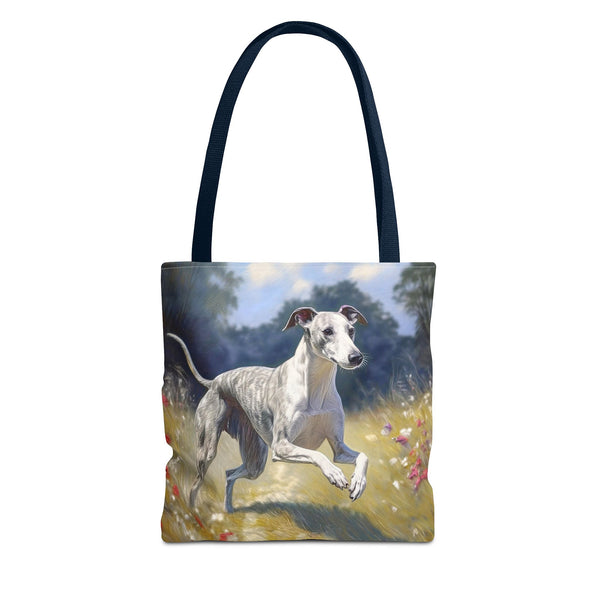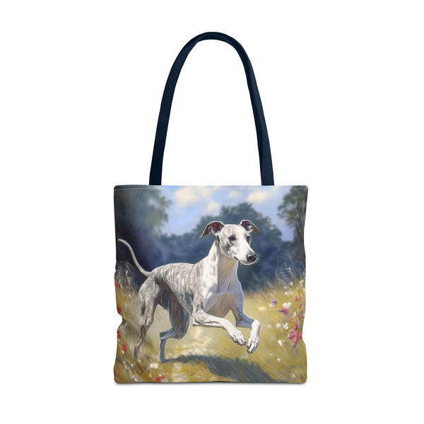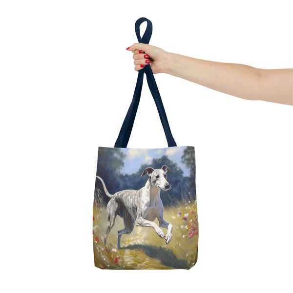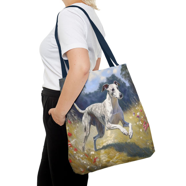 Introducing the Whippet Polyester Tote Bag (AOP), your new go-to companion for everyday escapades! Made from 100% polyester, this bag is not only lightweight but tough enough to handle all your whims and treasures. With three spacious sizes and customizable handle colors, you can carry everything from groceries to your quirky finds in style. The all-over prints add a unique flair, and the double-stitched seams ensure it stands up to all your adventures. Say adieu to dull bags and hello to versatile charm!