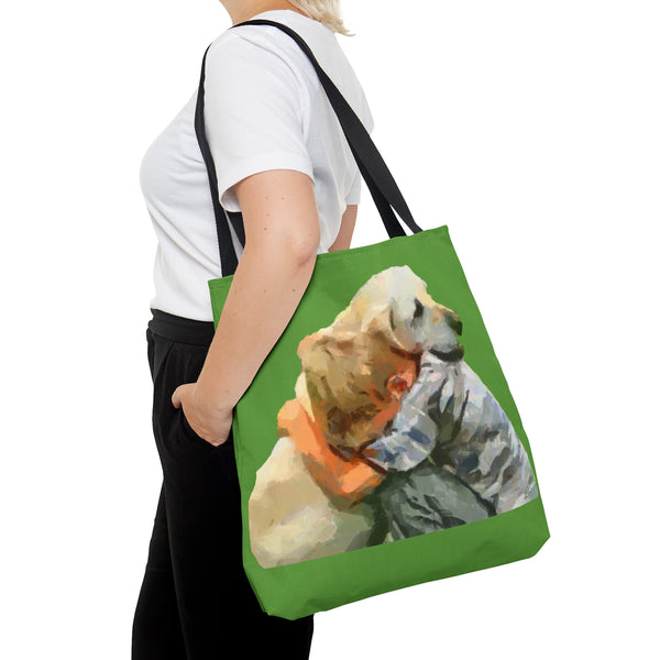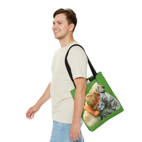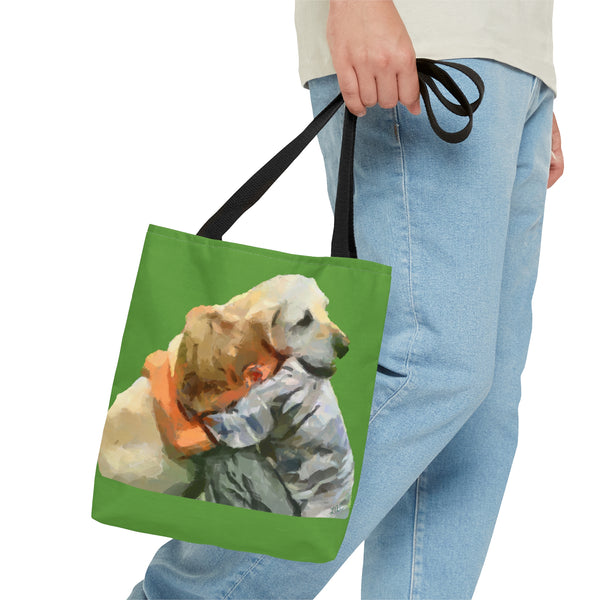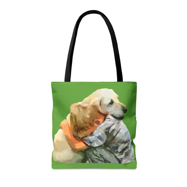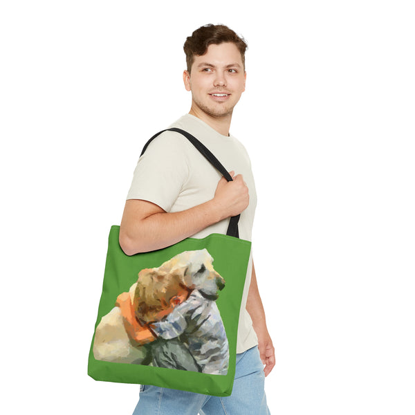 Introducing the Yellow Lab and Child Tote Bag, perfect for showcasing your love for these friendly companions. Featuring an adorable all-over print, this tote is sure to grab attention wherever your adventures take you. Made from high-quality polyester, it’s built to last through beach days and city outings alike. With ample space measuring 18 x 18 inches, sturdy black cotton handles, and a cozy interior, this bag combines style and practicality effortlessly.