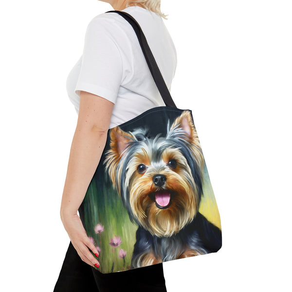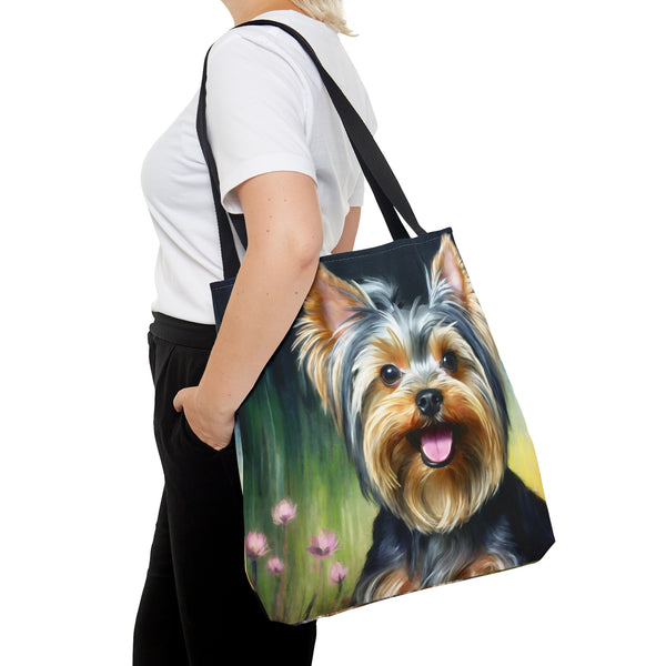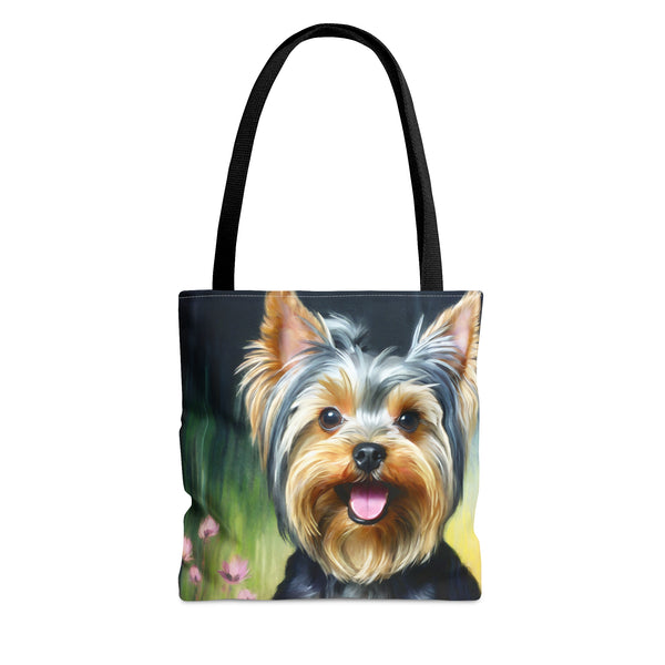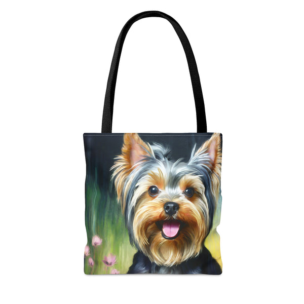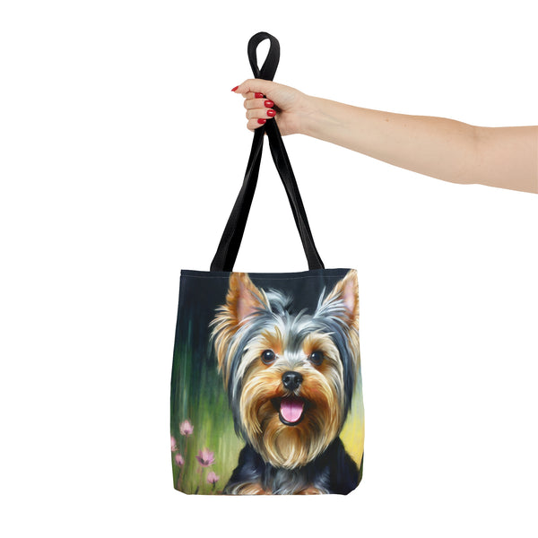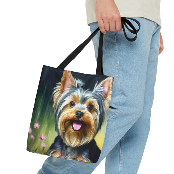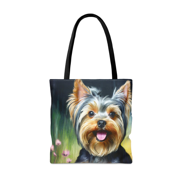 Meet the Yorkie #3 Tote Bag, where small size meets big style! This delightful tote, made from robust 100% polyester, is crafted to keep up with your daily adventures while showcasing its charming design. The soft black cotton handles offer comfort, making it the perfect accessory to stand out in any crowd. Elevate your outings and express your vibrant personality effortlessly with this eye-catching tote.