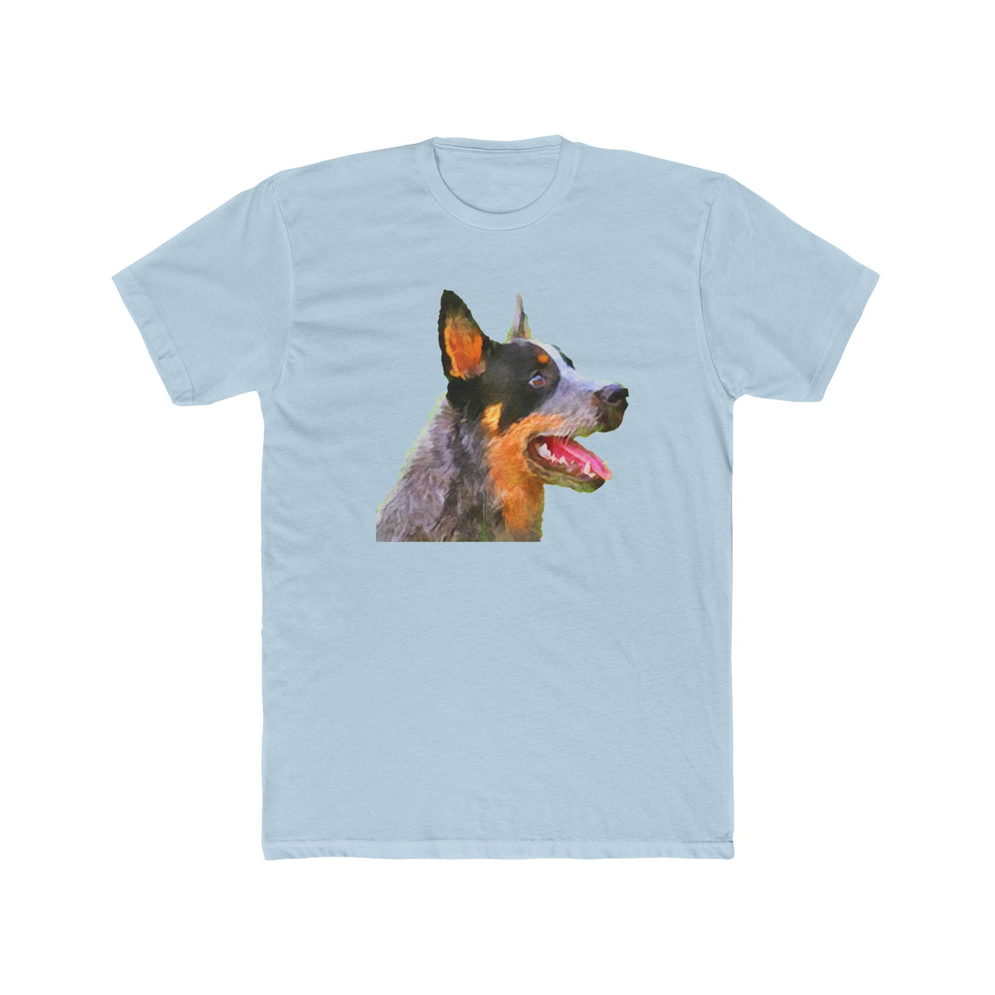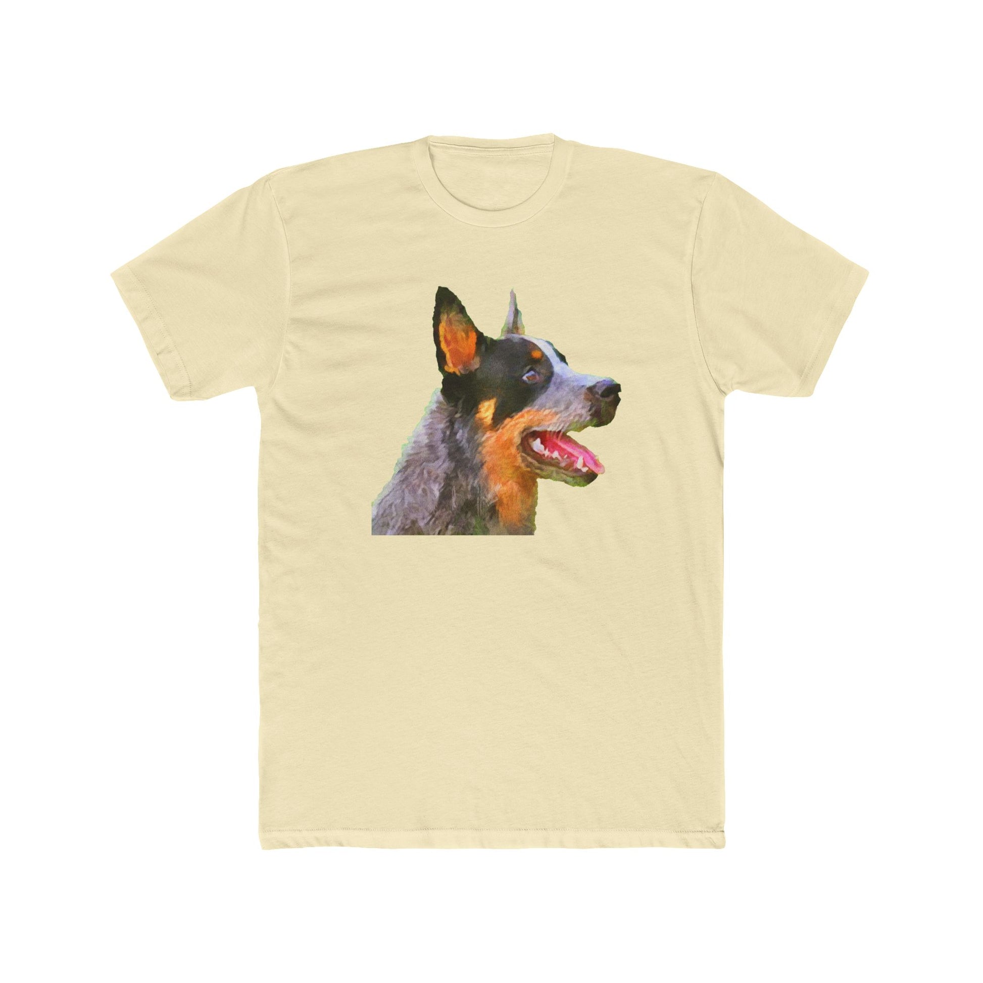 Introducing the Blue Heeler - Australian Cattle Dog 'Percy' Men's Fitted Cotton Crew Tee, a luxurious addition to your wardrobe that exudes style and comfort. Crafted from 100% combed ringspun cotton, this tee offers an exceptionally soft touch that gracefully caresses the skin, making it ideal for workouts or quiet moments with your favourite book. Its premium fit flatters a variety of body types, designed to be slightly larger for enhanced freedom of movement. With high-quality prints capturing the spirited essence of the Blue Heeler, this tee is a stunning homage to these charming companions.