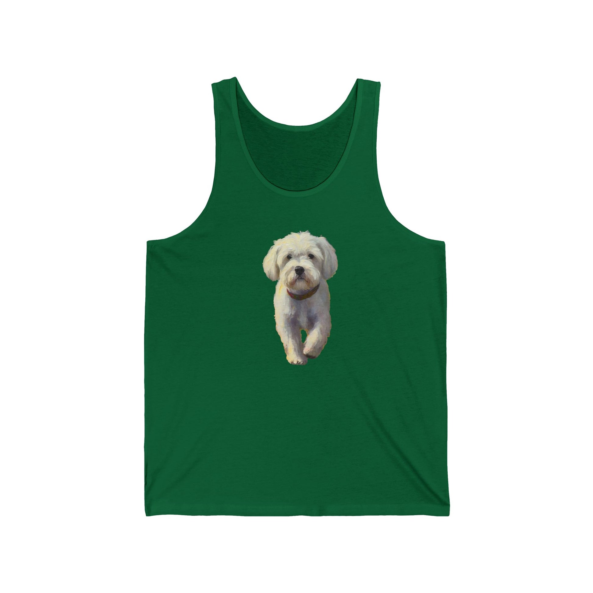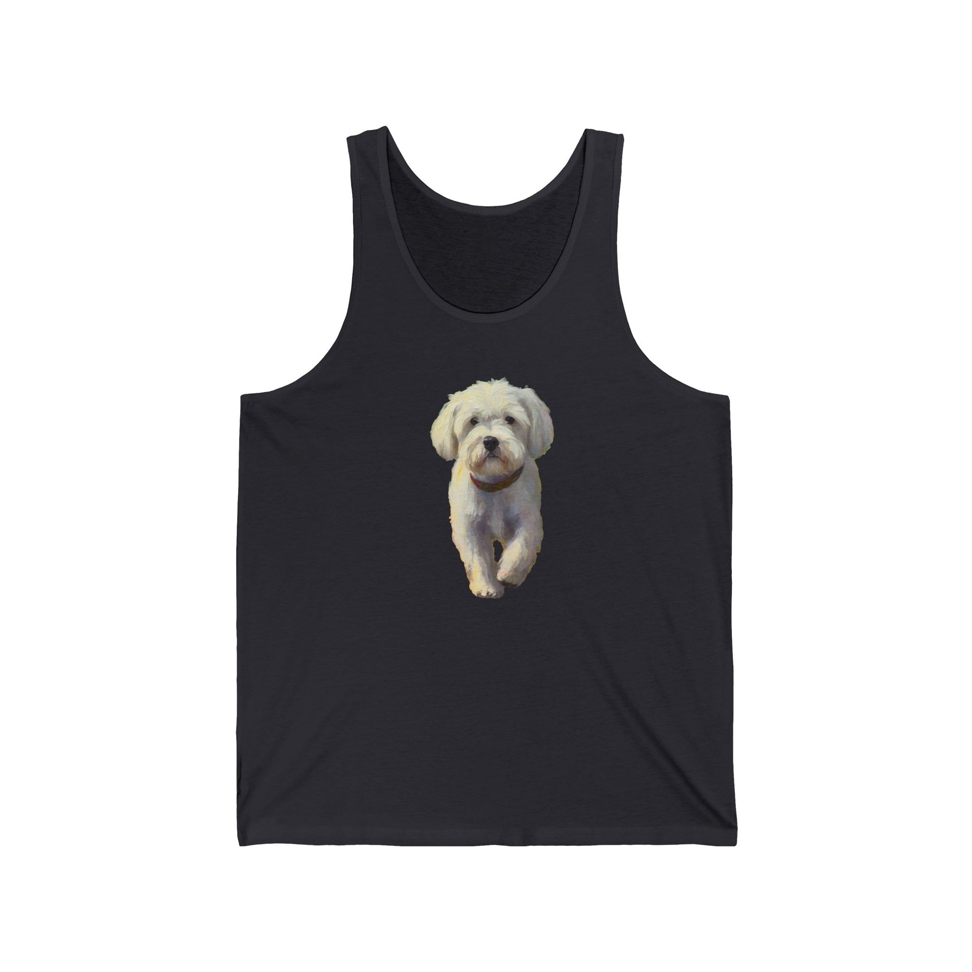 Discover the enchanting Bolognese Unisex Jersey Tank, where gentle comfort meets timeless elegance. Crafted from Airlume combed and ring-spun cotton, its softness caresses the skin like a tender embrace. The high-quality print, reminiscent of an original painting, adds an artistic touch, effortlessly captivating all who behold it. Designed with a true-to-size retail fit and structural side seams, this tank embraces your silhouette beautifully, ensuring you look stunning from every angle. With a convenient tear-away label, express your unique spirit as you move through your day. The Bolognese Unisex Jersey Tank is more than just clothing; it is an invitation to celebrate your individuality with grace and warmth.