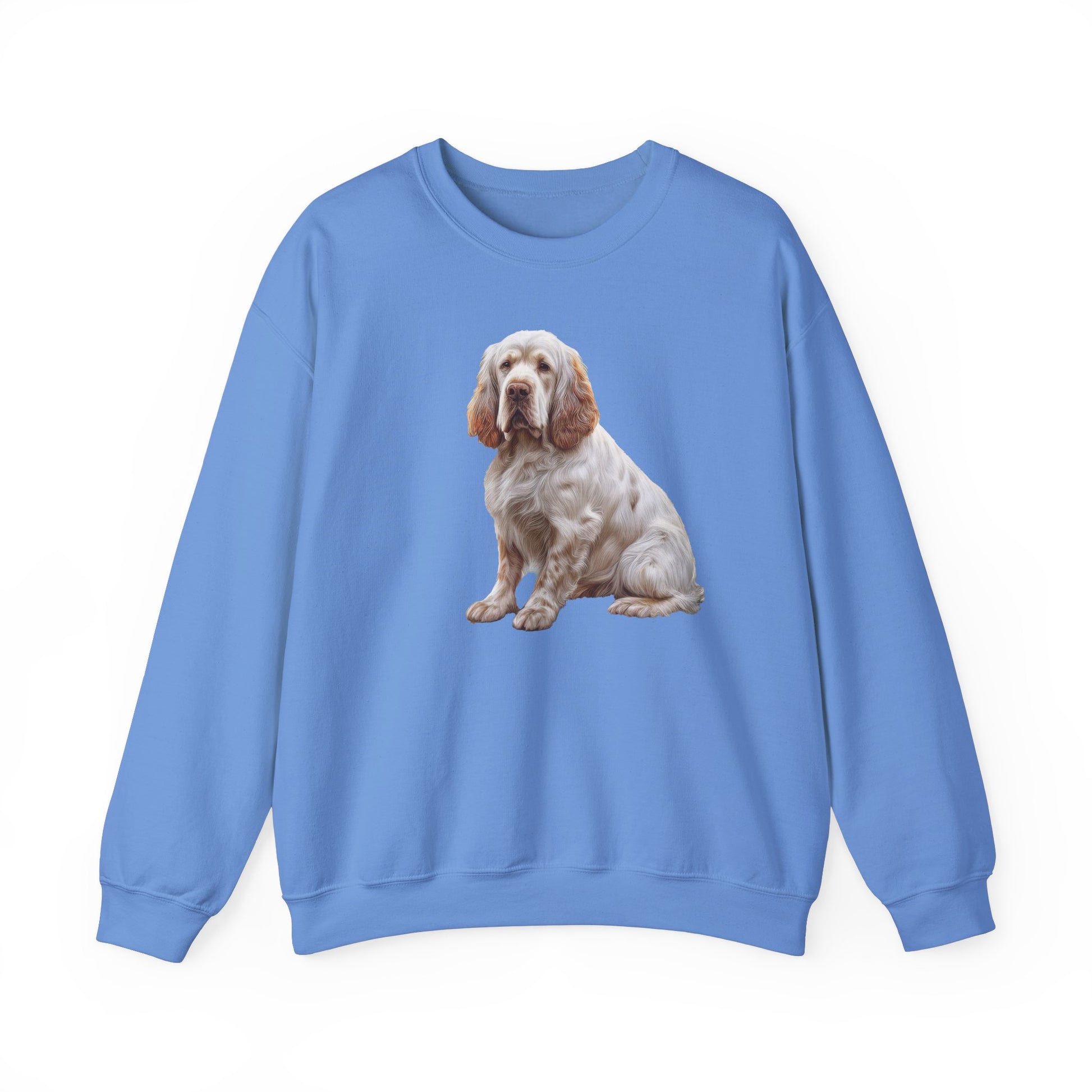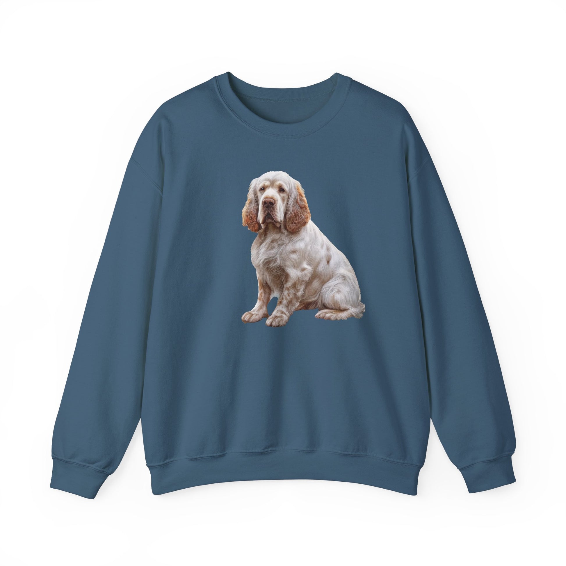 Embrace the warmth and charm of the Clumber Spaniel with this exquisite unisex 50/50 crewneck sweatshirt. Crafted for those who adore this gentle, devoted breed, it wraps you in a luxurious blend of polyester and cotton, ensuring a soft touch on cozy days. Featuring a classic fit, ribbed knit collar, and OEKO-TEX-certified dyes, this sweatshirt is more than attire; it is a heartfelt tribute to your furry friend.