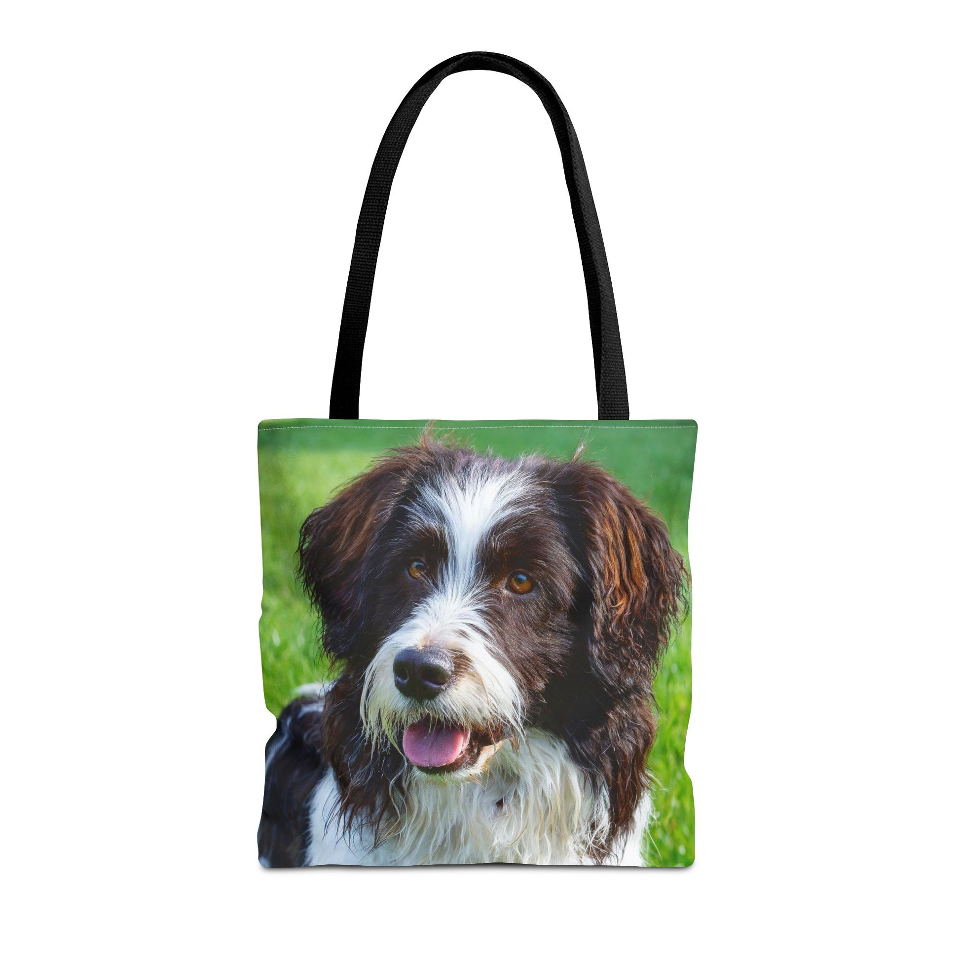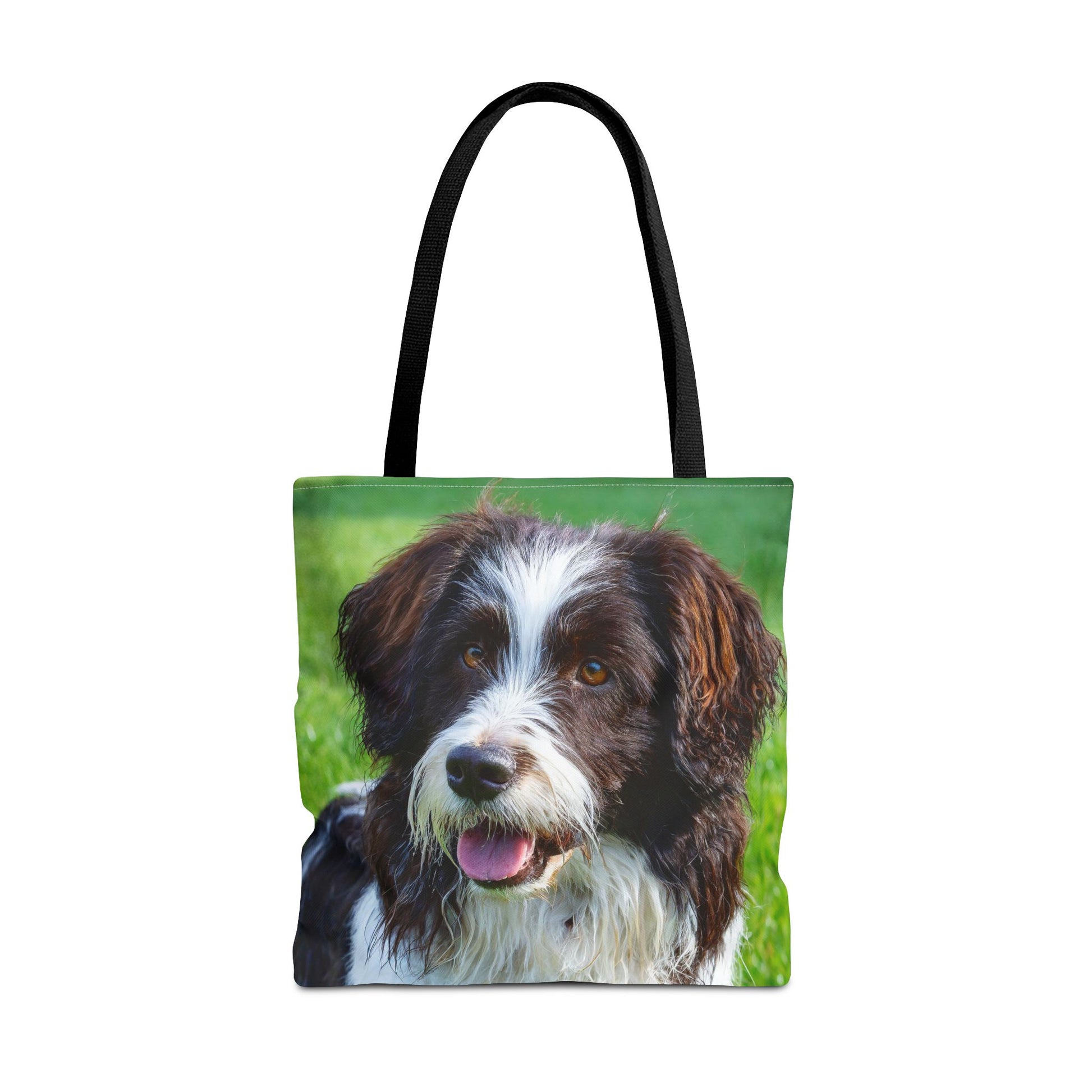 The Drentsche Patrijshond Tote Bag (AOP) beautifully combines functionality and style for every occasion. Made from durable spun polyester, it showcases double-stitched seams and sturdy cotton webbing straps, making it perfect for daily adventures. The eye-catching all-over print enhances the chic nonwoven laminate lining, ensuring you make a fashion statement with this tote. Ideal for outings and errands, it reflects the intelligent and loyal nature of the Drentsche Patrijshond.