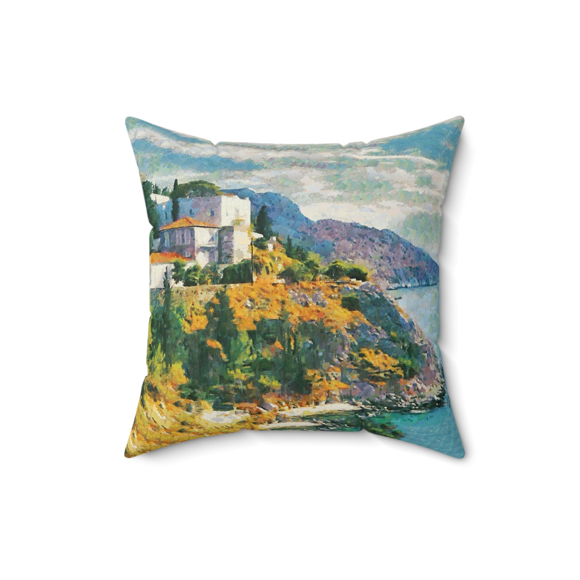 Hydra (Greece) Hillside Spun Polyester Throw Pillow